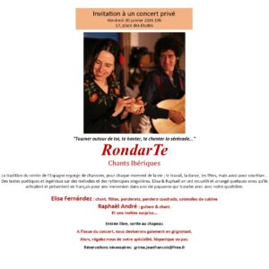 Invitation à un concert privé – vendredi 30 janvier 19h – 17 place des études 23 janvier 2026 contraluz Soirées 0