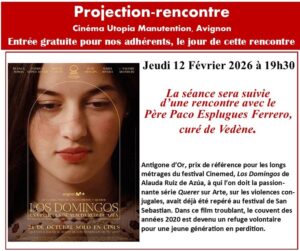 La séance du jeudi 12 février à 19h30 sera suivie d’une rencontre avec le Père Paco Esplugues Ferrero, curé de Vedène, en collaboration avec l’association Contraluz. Vente des places à partir du 4 février.